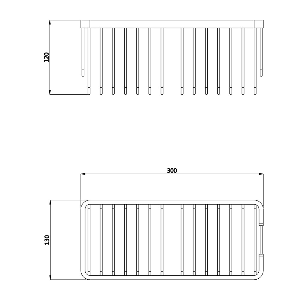 Cesta de ducha rectangular modelo SIR fabricada en aluminio de 30 cm de largo para función portagel. No se oxida