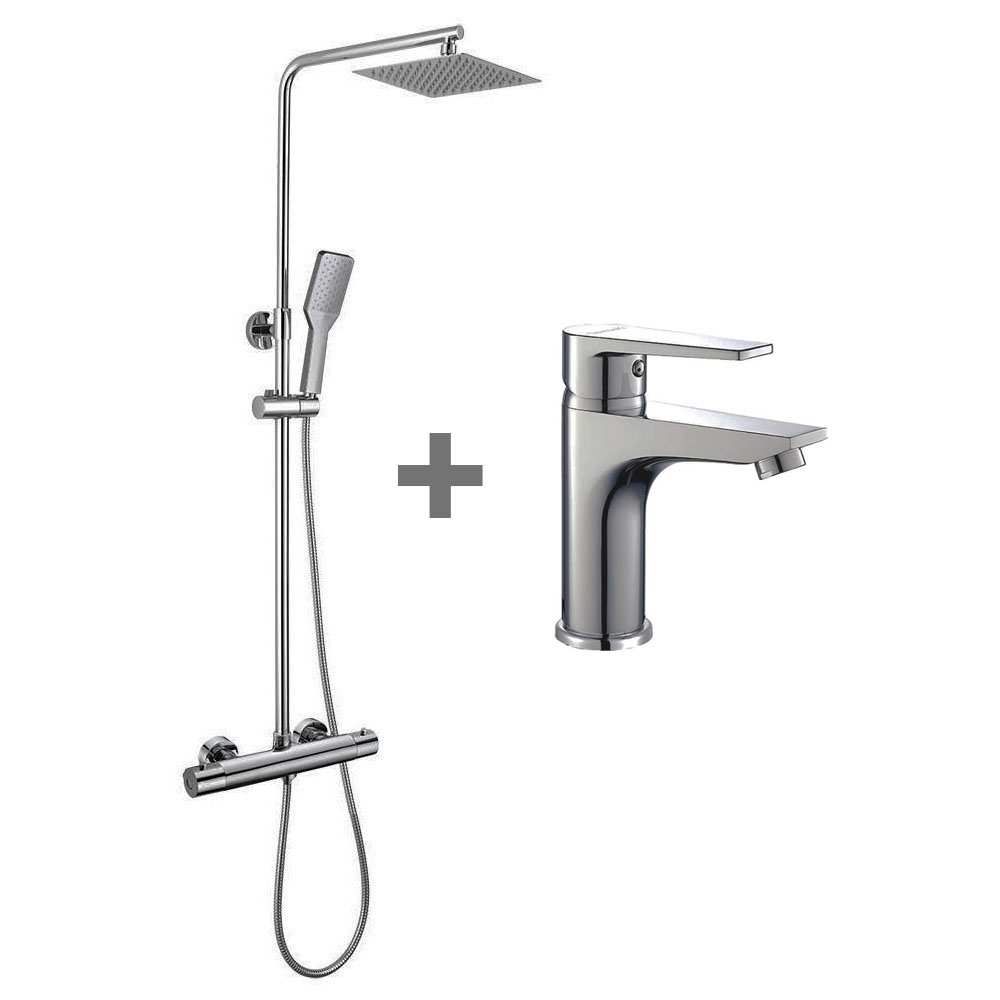 Kibath Pack termostático ASTRO columna y grifo acabado cromo brillo fabricado en latón