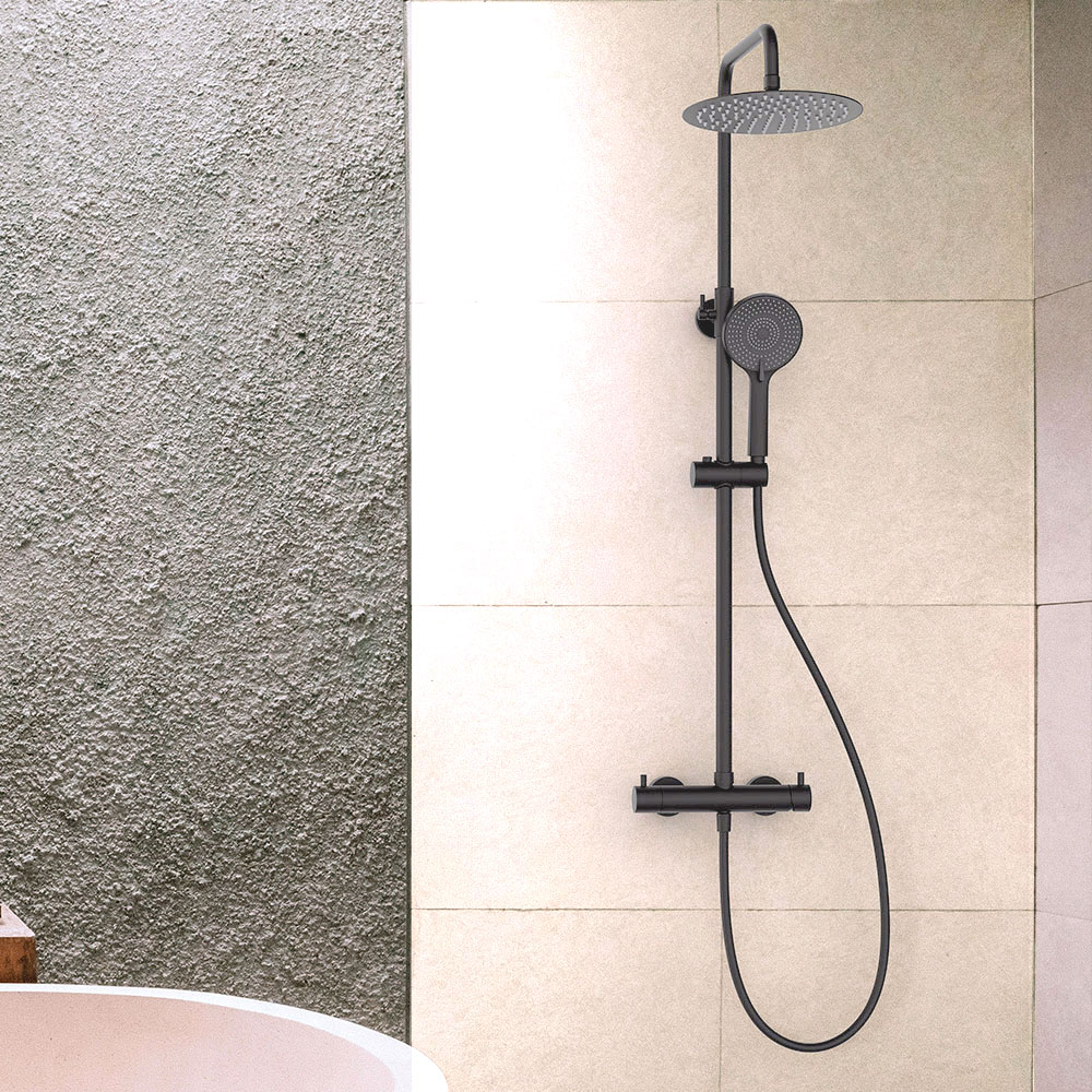 Kibath Columna De Ducha monomando redonda 96-136 cm OSO acabado negro mate fabricado en latón