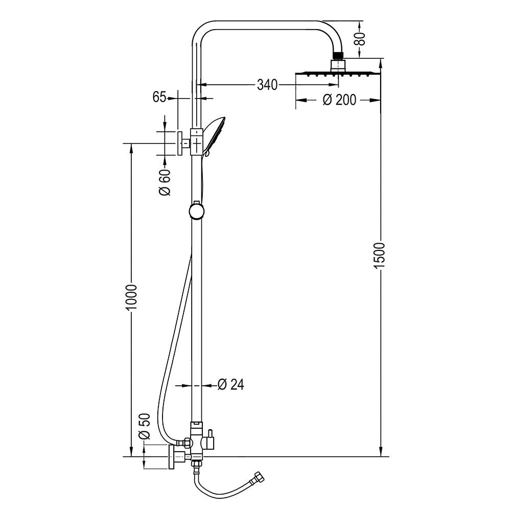 ? Compatible con cualquier grifo estandar de ducha. Ten la seguridad de que nuestra columna sin grifería se adaptará perfectamente al grifo de ducha que tengas previamente instalado en tu baño. El sistema se conecta del grifo a la ducha a través del flexo de 60 cm sin problemas, mientras que el desviador cerámico incluido permite elegir llevar el agua al rociador superior o a la ducha de mano.