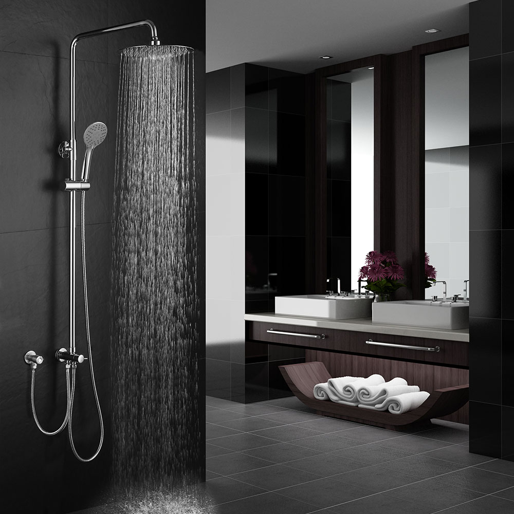 ? Dota de diseño a tu hogar, si buscabas algo diferente y exclusivo, lo has encontrado, todo el sistema de ducha tiene un diseño redondo que dará a tu hogar de un estilo moderno a la par que elegante. El rociador superior es extraplano, fabricado en acero inoxidable, con un diámetro de 20 cm. La ducha de mano es redonda de hidromasaje de 3 posiciones con sistema antical, con un flexo extensible de acero inoxidable de 200 cm. Los acabados son en cromo brillo, un diseño que te encantará.