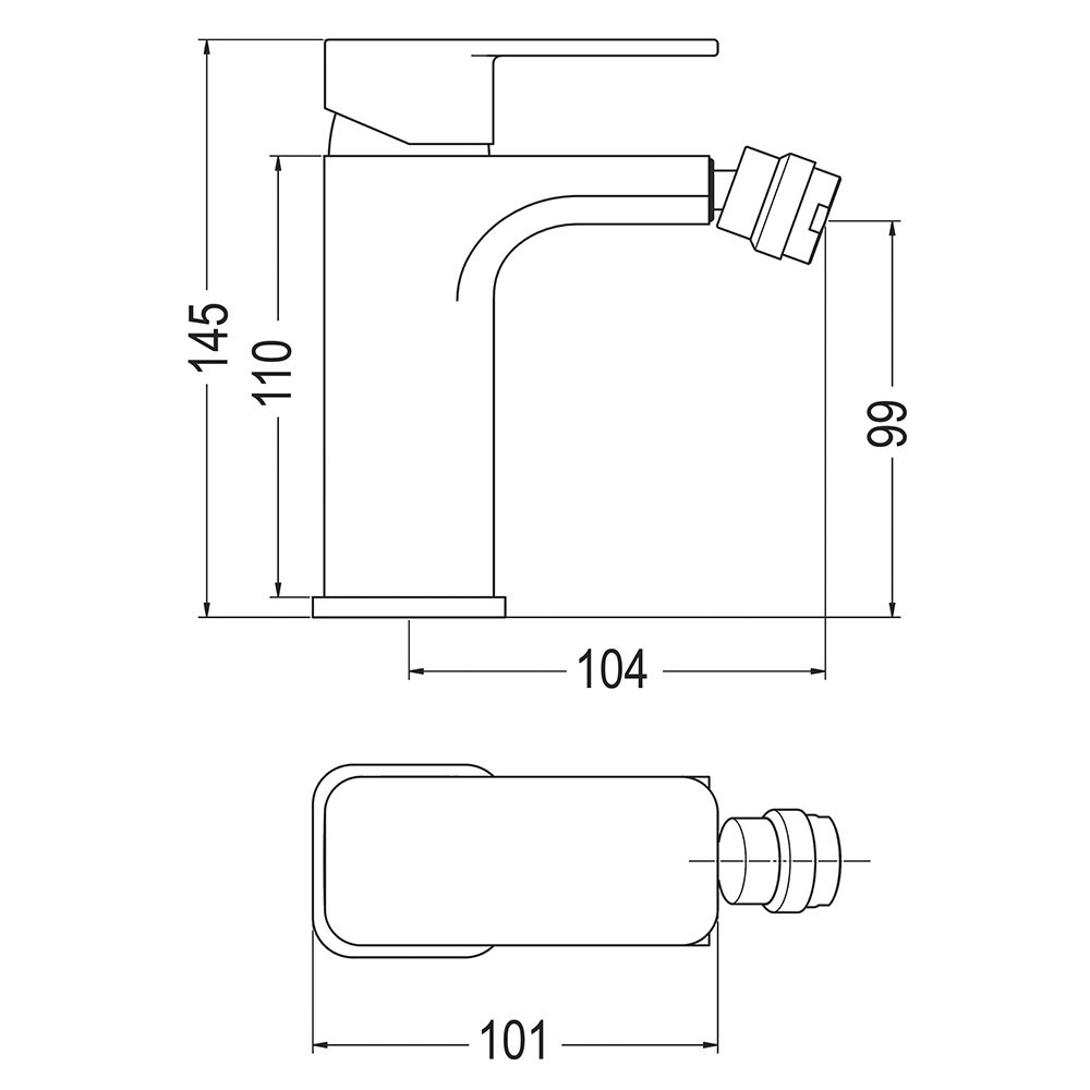 Grifo monomando de bidet CHE diseño estilizado y cuadrado.