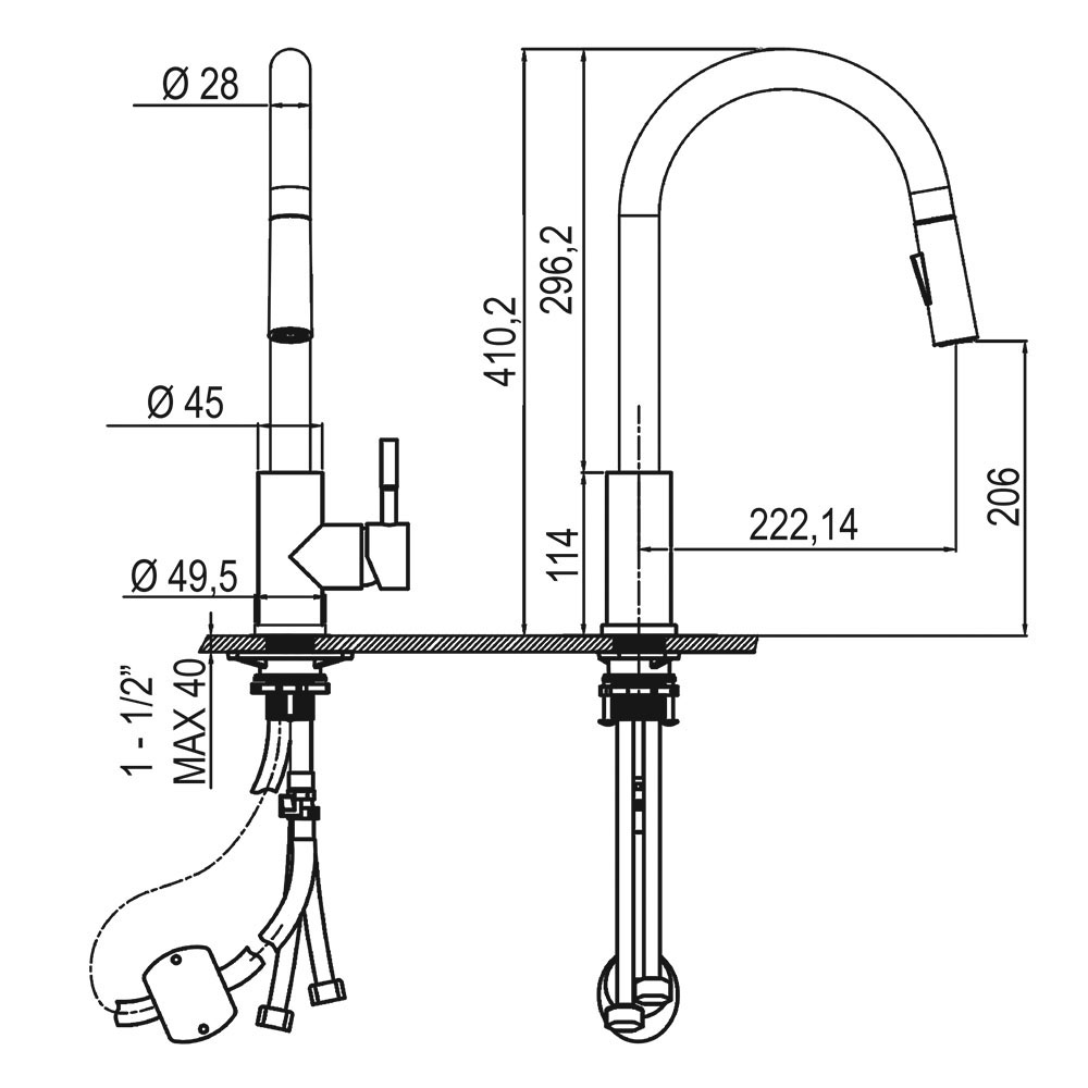 Kibath Grifo De Fregadero MIR extraible de acabado cromo brillo fabricado en latón