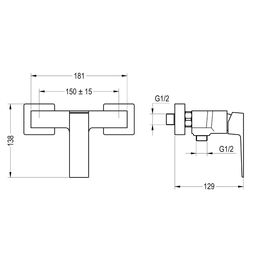 Grifo monomando de ducha modelo VER con equipo de ducha de mano cuadrada. Fabricado en latón con acabados en cromo brillo. Cartucho cerámico marca CITEC