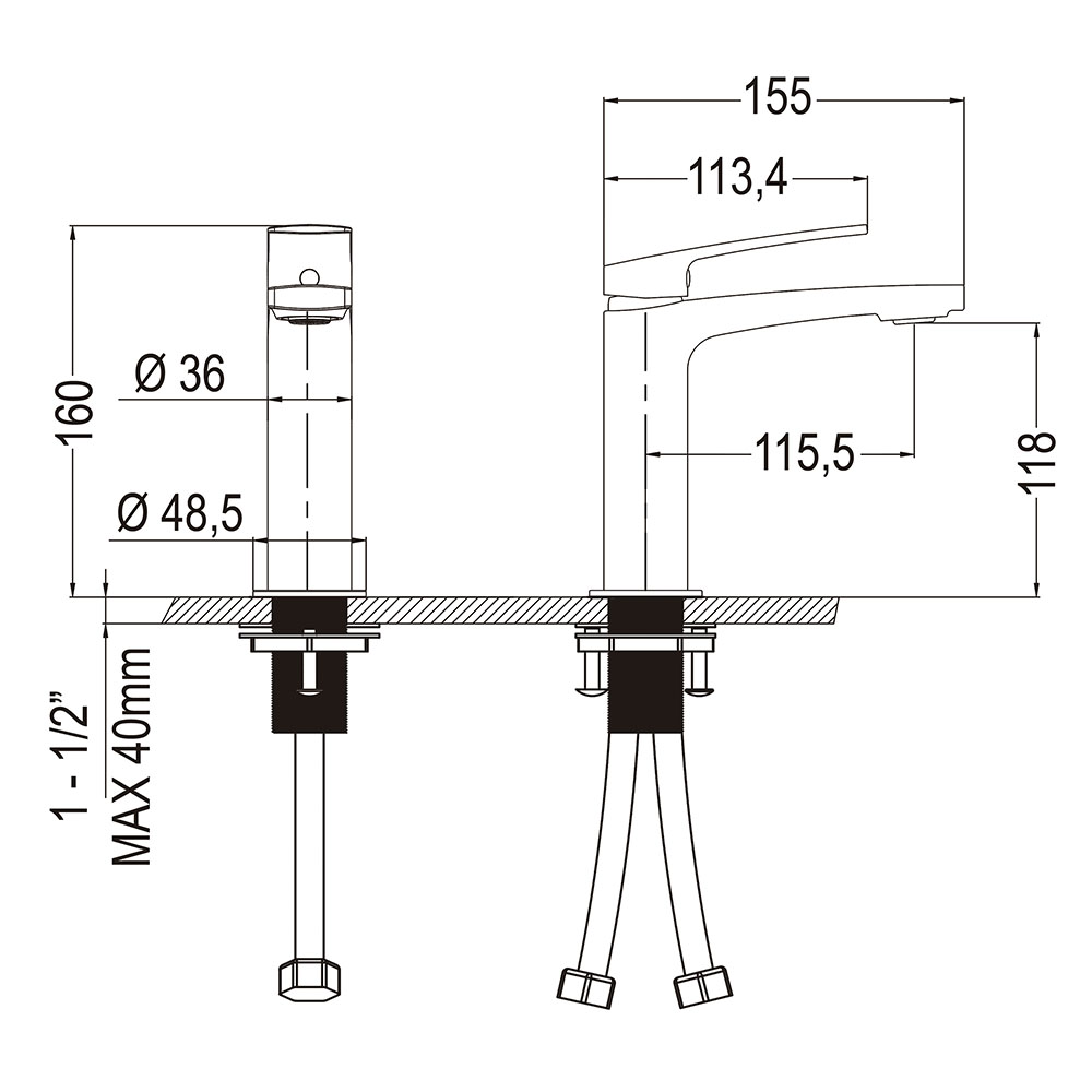 ? instalación sencilla no tendrás ningún problema con la instalación de tu nuevo grifo para lavabo de baño. Tiene un cartucho de 40 mm de alta calidad y, además, incluye la base embellecedora cromada fabricada en latón, los latiguillos correspondientes y el herraje m8