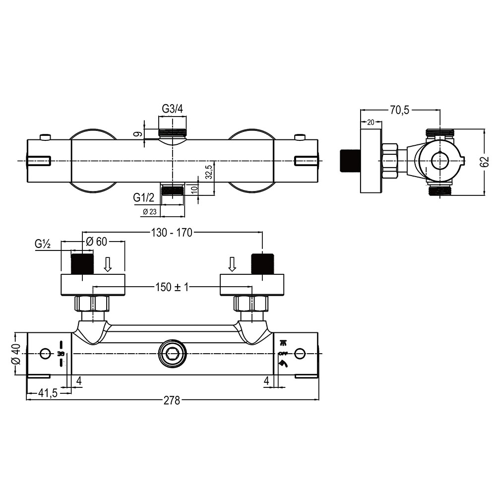 Este producto es un grifo termostático redondo para columna de ducha de la marca Kibath que dispone de una salida superior. Tiene un selector integrad …