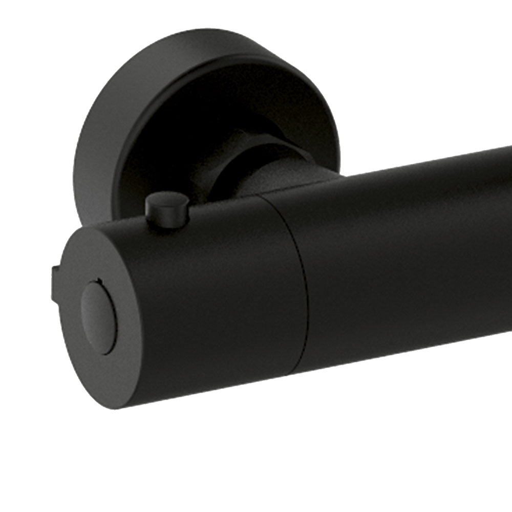 Kibath Grifo Para Columna De Ducha redondo termostático acabado negro mate fabricado en latón
