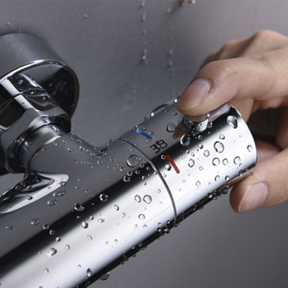 Kibath Grifo Para Columna De Ducha redondo termostático acabado cromo brillo fabricado en latón