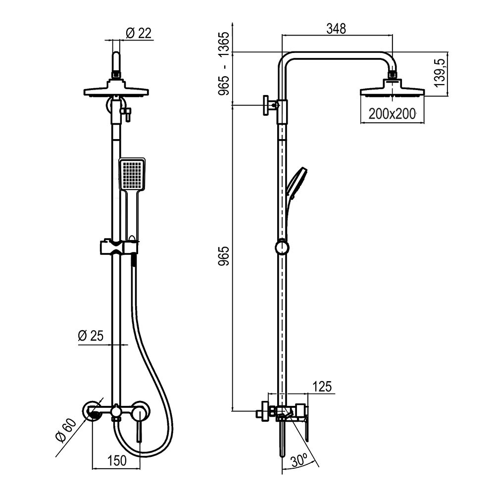 Esta columna ducha de 96-136 cm con forma CUADRADA con acabado del producto en negro mate está fabricado en latón. Este Columna Ducha REY 3 vías tiene un peso aproximado de 4,2 Kg.