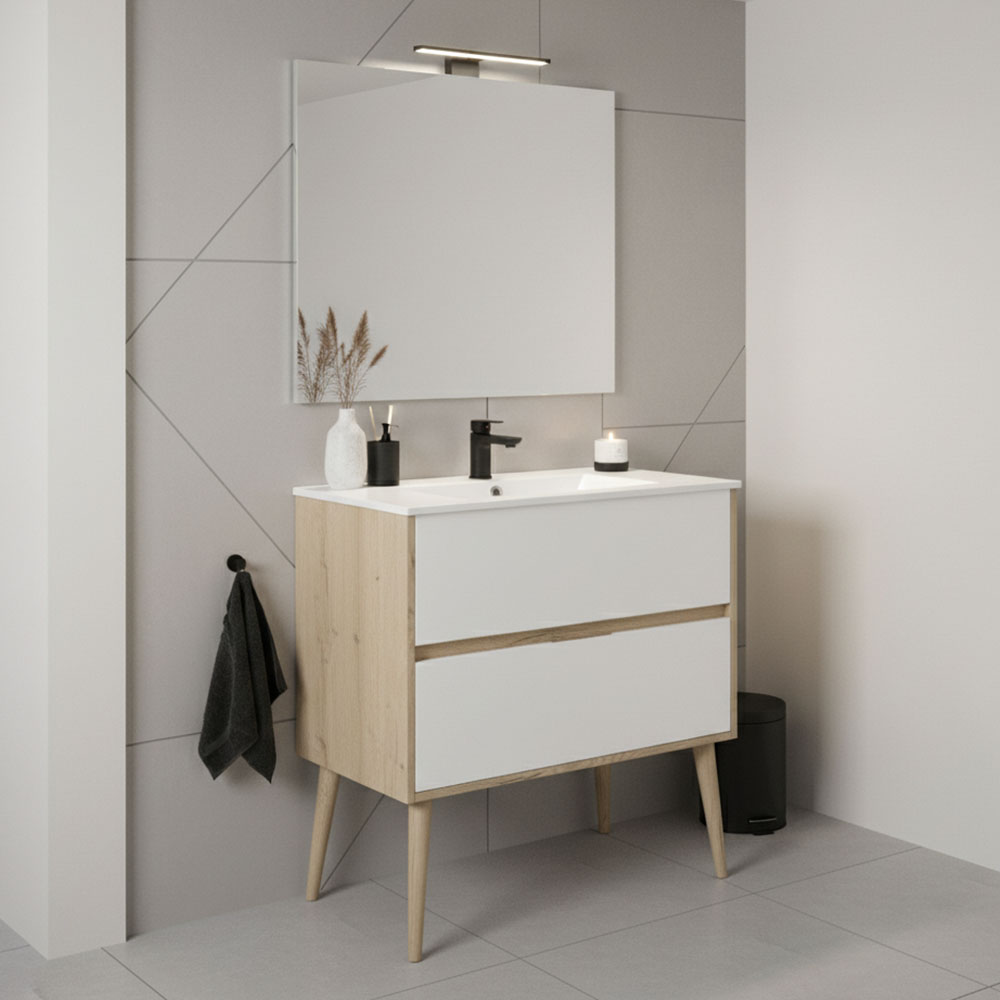 Kibath Conjunto de Mueble de Baño NORUEGA 2 cajones suspendido (patas decorativas incluidas) acabado roble y blanco