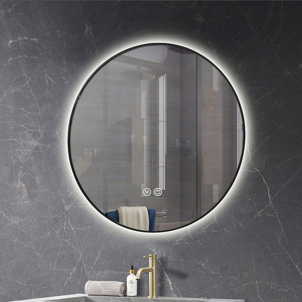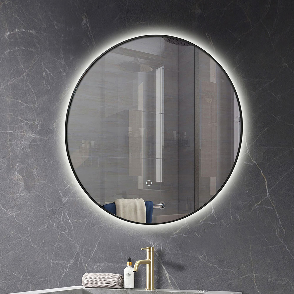 Espejo tipo led para baño con forma redonda. Tiene un diámetro de 80cm. Incorpora un botón tipo touch para el encendido y apagado del espejo. Además en el mismo botón se enciende y apaga el antivaho, así evitarás que se te olvide apagarlo. El color de la luz son 6000k y podrás regular la intensidad pulsando el botón de encendido y apagado. Máxima calidad con el marcado CE y con el certificado IP44. Nuestro espejo incluye un marco de aluminio en la parte trasera para dar consistencia al cristal. La iluminación es frontal, no trasera hacia la pared, de esta forma se dispone de una mayor intensidad de iluminación aprovechable.