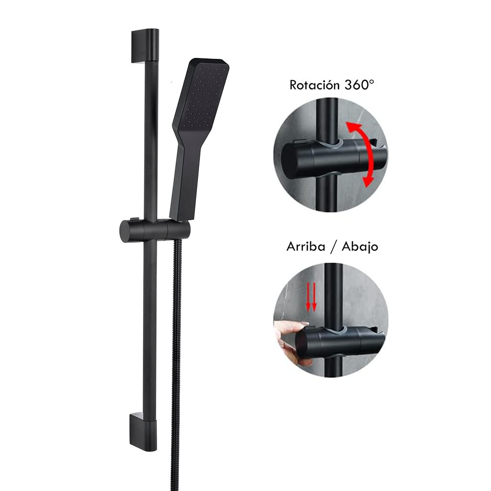 Kit Barra de Ducha 1 posición con equipo FUTUR cuadrado acabado negro mate fabricado en acero inoxidable