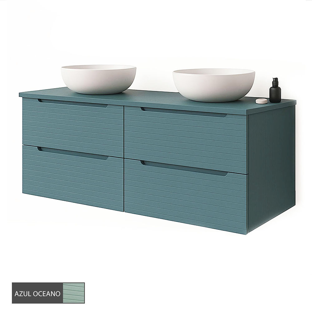Kibath Mueble de baño con Lavabo BOREAL 120×45 cm acabado Azul Oceano mate 2 cajones suspendido
