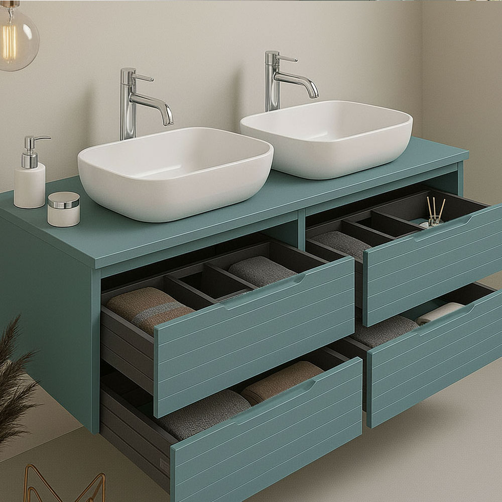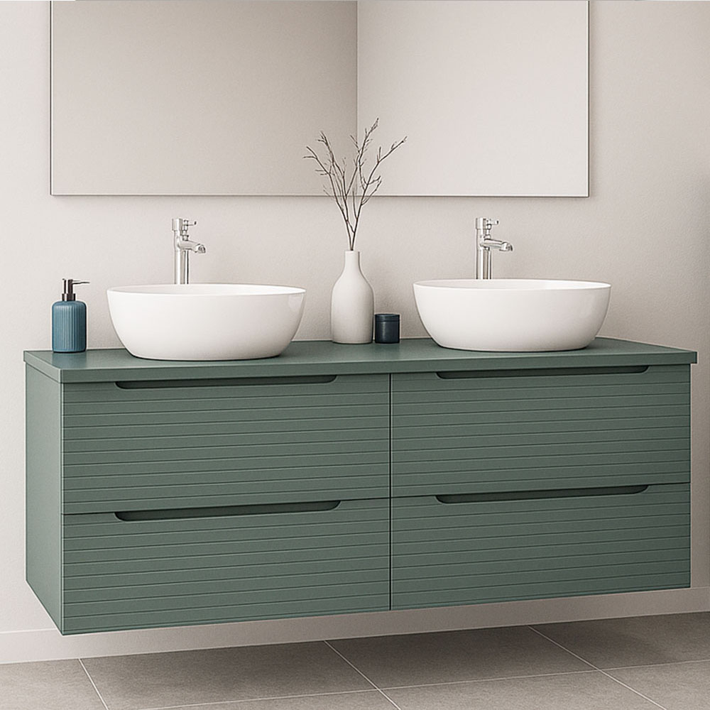 Kibath Mueble de baño con Lavabo BOREAL 120×45 cm acabado Verde Lago mate 2 cajones suspendido