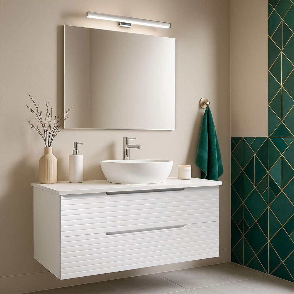 Kibath Mueble de baño con Lavabo, Espejo y Aplique LED BOREAL 100×45 cm acabado Blanco mate 2 cajones suspendido