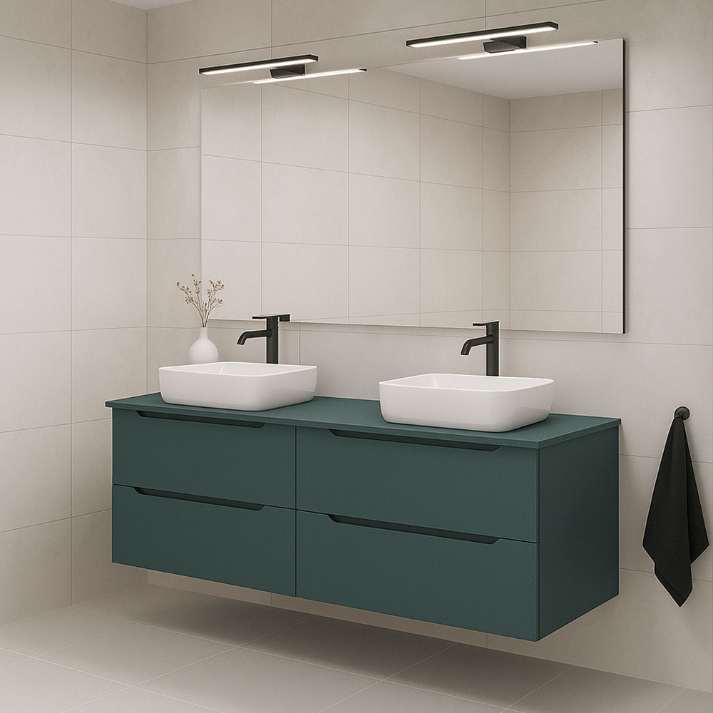 999,00€ _PVPSeleccionar opciones Este producto tiene múltiples variantes. Las opciones se pueden elegir en la página de productoKibath Mueble de baño con Lavabo, Espejo y Aplique LED KEN acabado Desierto mate 2 cajones suspendido