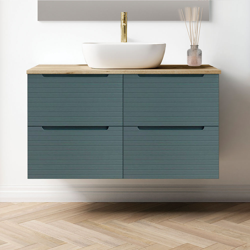 Kibath Mueble de baño con Lavabo, Espejo y Aplique LED BOREAL 120×45 cm acabado Azul Oceano mate 2 cajones suspendido