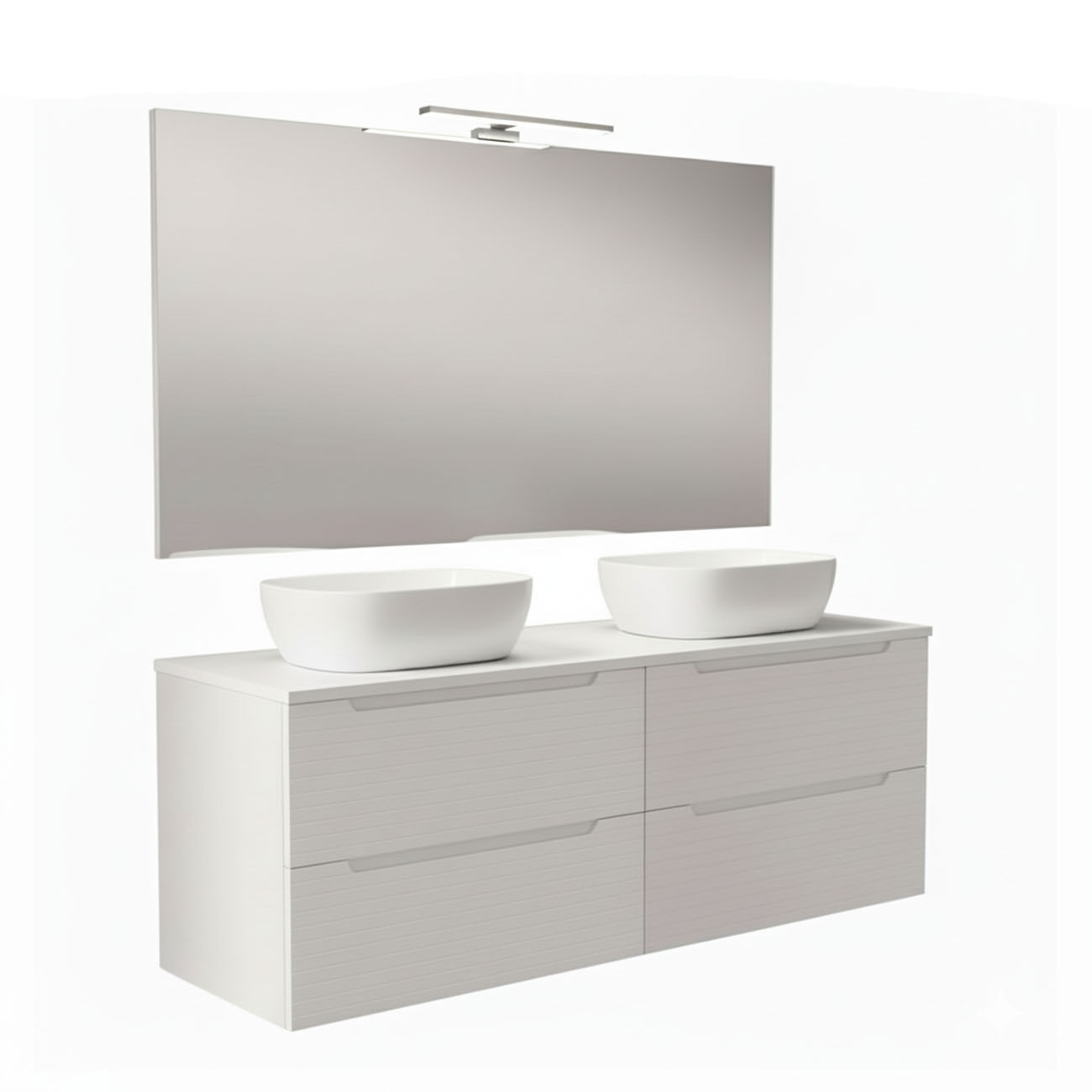 Kibath Mueble de baño con Lavabo, Espejo y Aplique LED KEN acabado Desierto mate 2 cajones suspendido