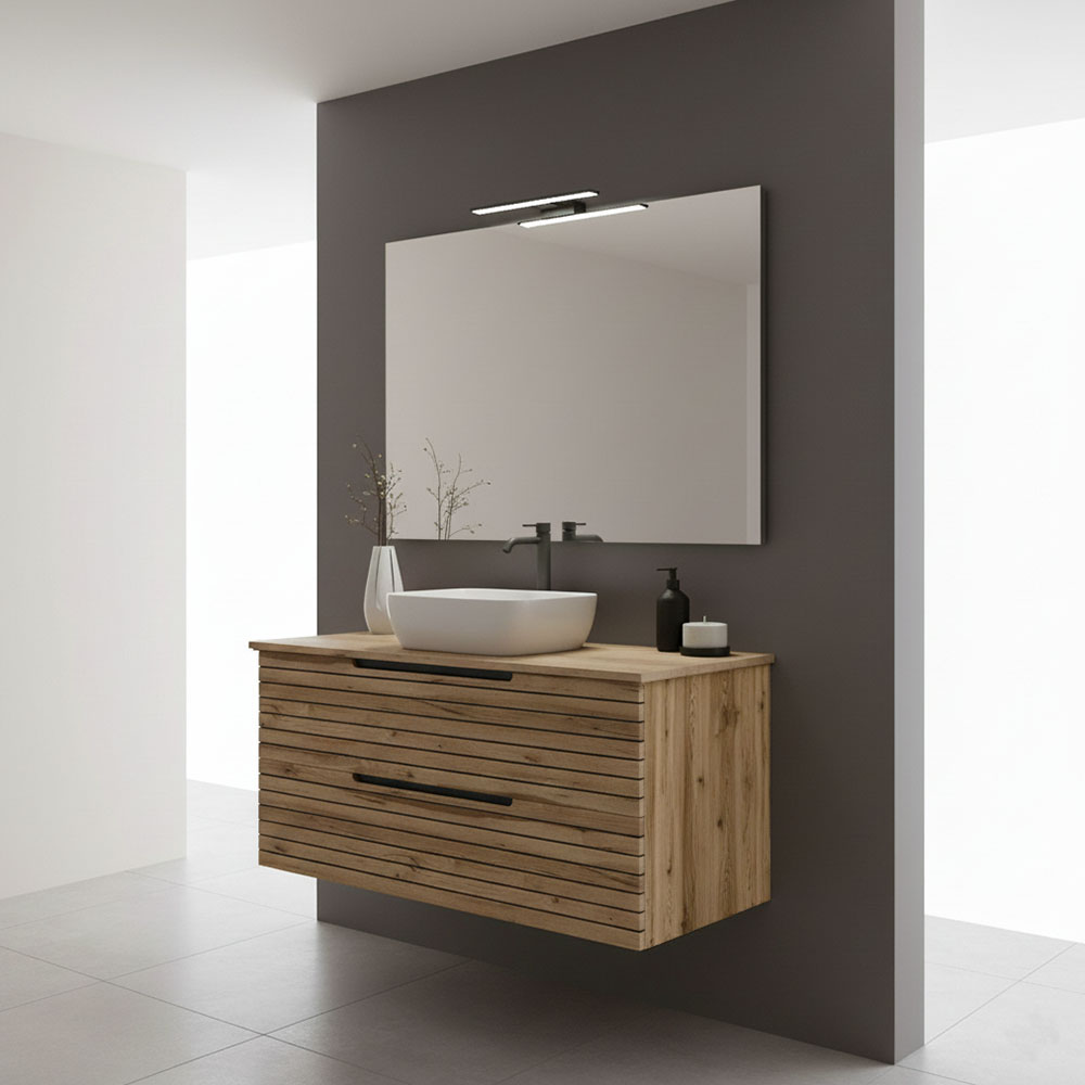Kibath Mueble de baño con Lavabo, Espejo y Aplique LED KEN 100×45 cm acabado Desierto mate 2 cajones suspendido