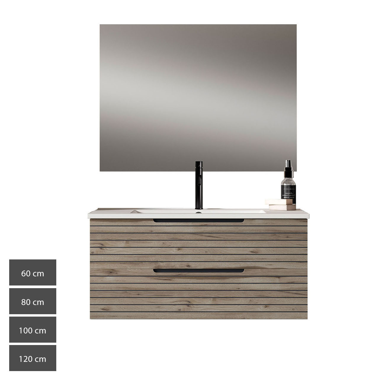 Kibath Mueble de baño con Lavabo, Espejo y Aplique LED KEN 60×45 cm acabado DESIERTO mate 2 cajones suspendido
