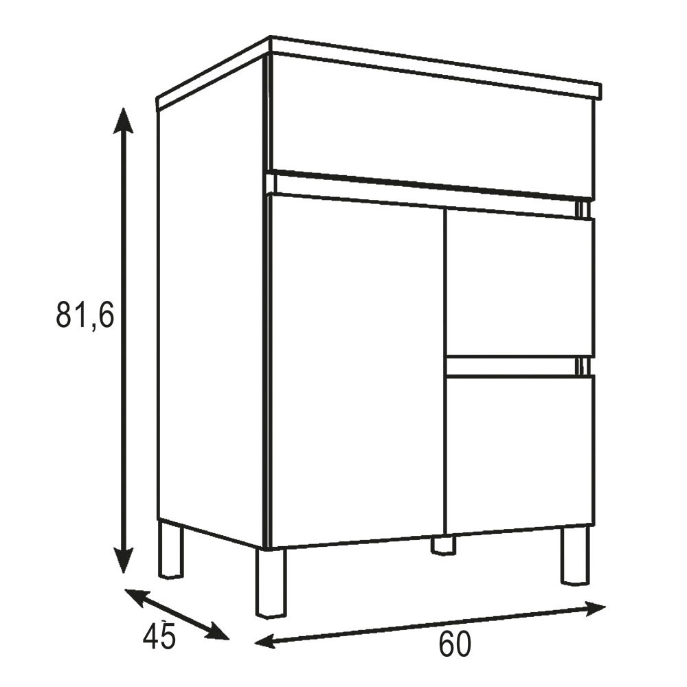 Kibath Mueble de Baño 60 cm con Lavabo URBAN 2 cajones y 2 puertas con patas