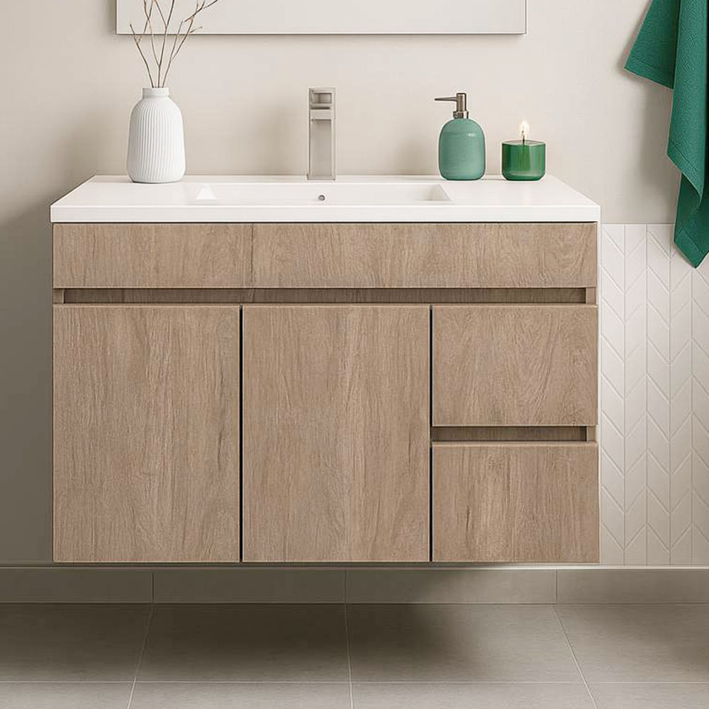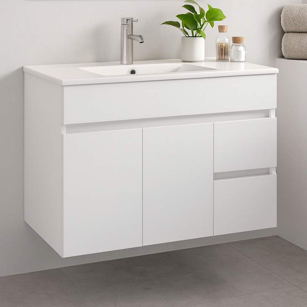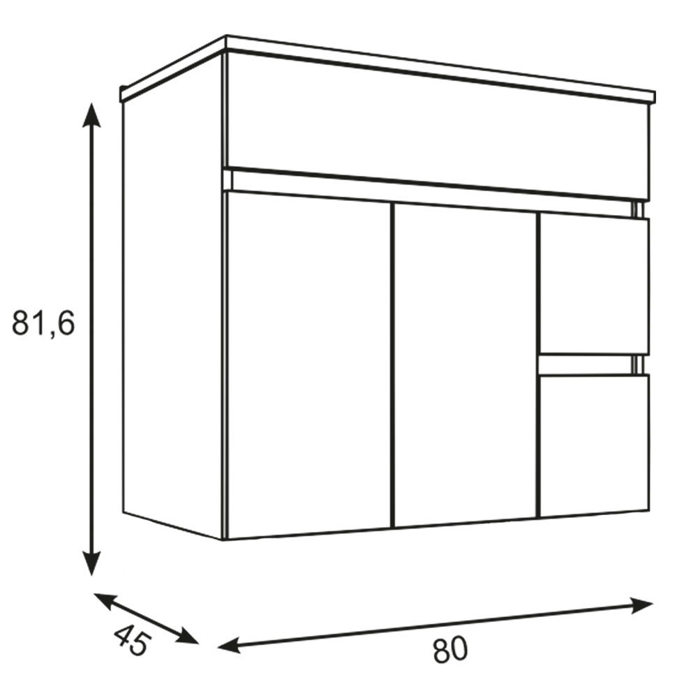 Kibath Mueble de Baño 80 cm con Lavabo URBAN 2 cajones y puertas suspendido