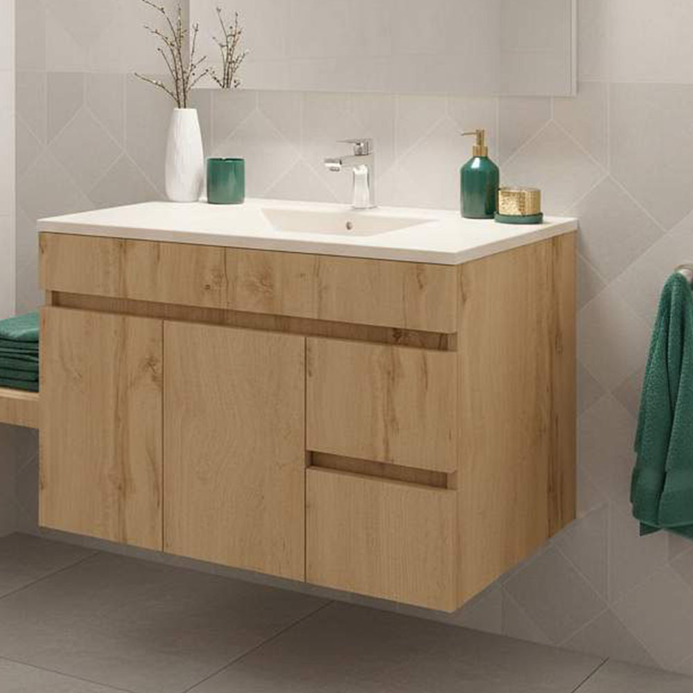 - El conjunto se compone de: mueble con cajón extraíble reforzado, lavabo de porcelana