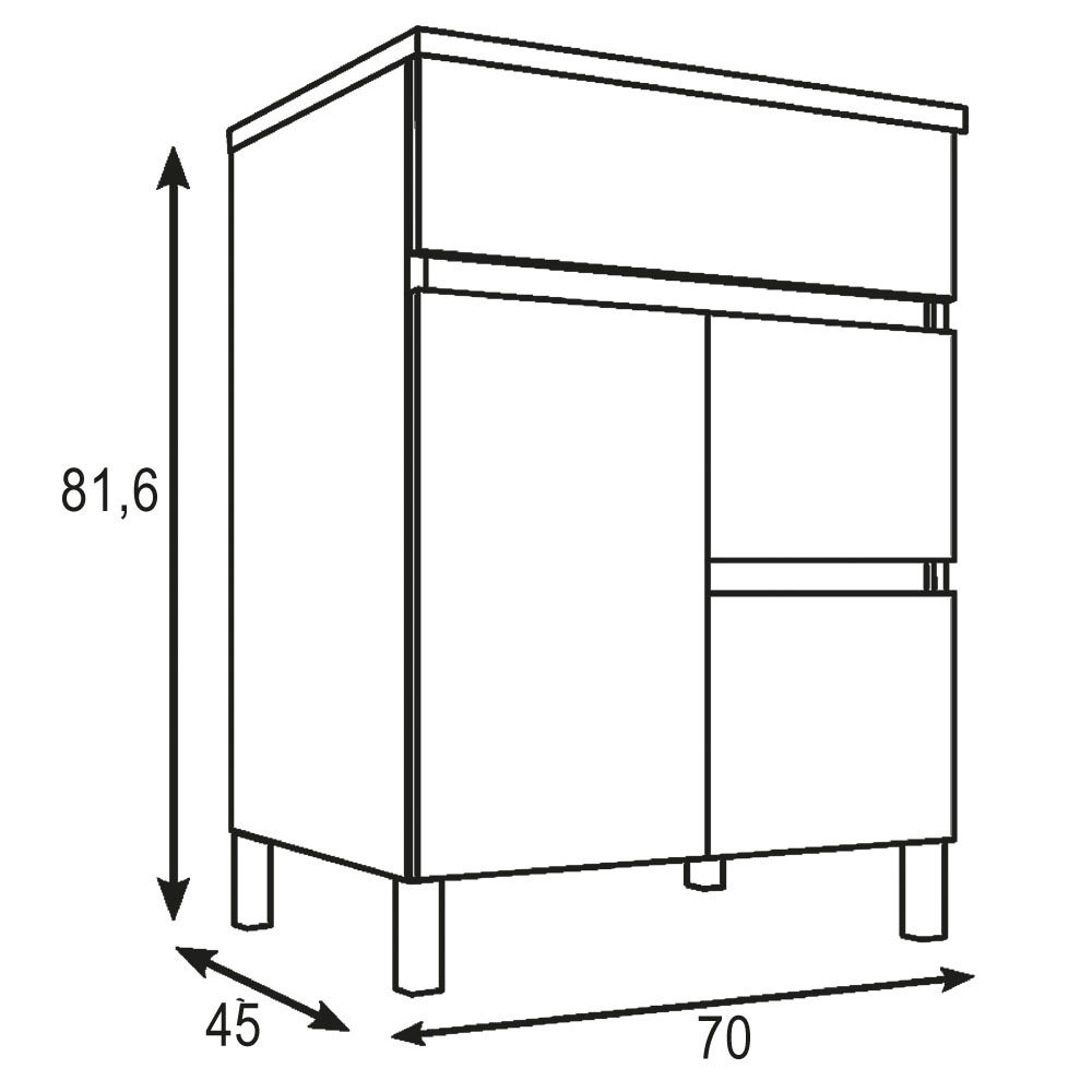 Kibath Mueble de baño 70 cm con Lavabo URBAN 2 cajones y 2 puertas con patas