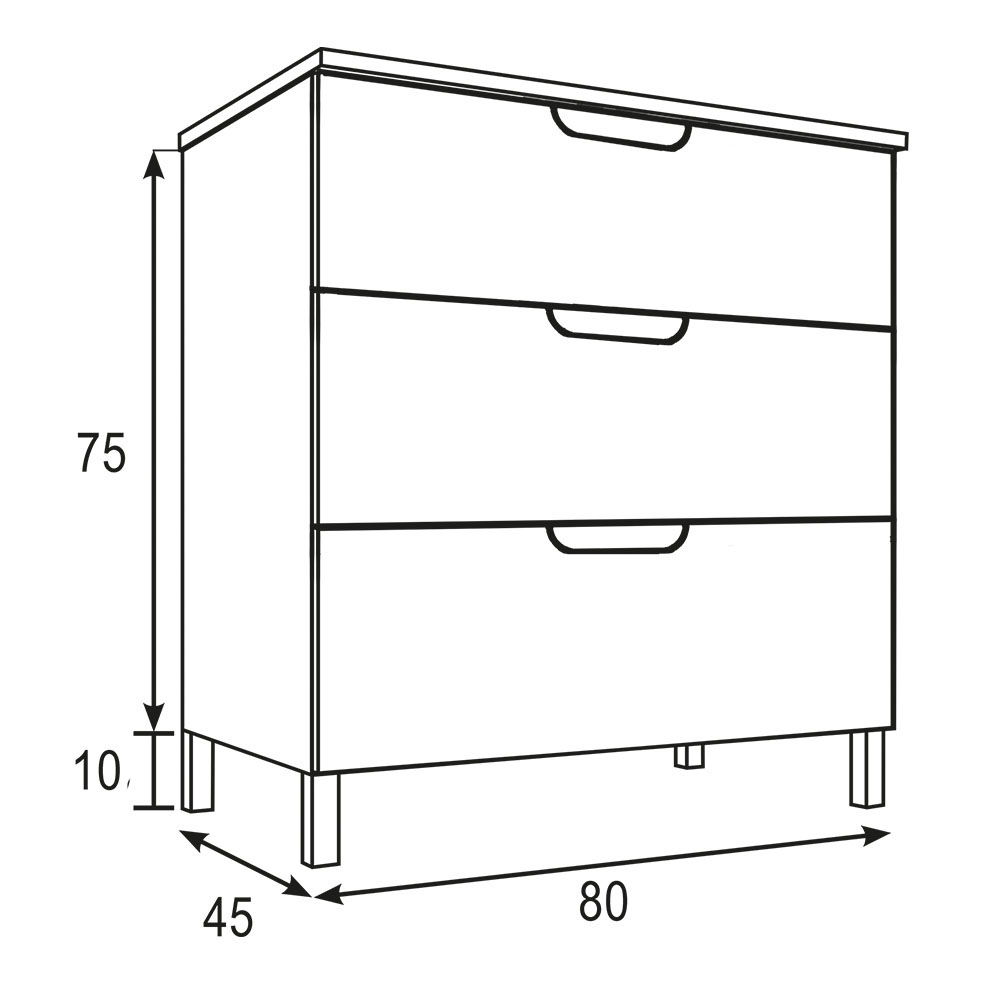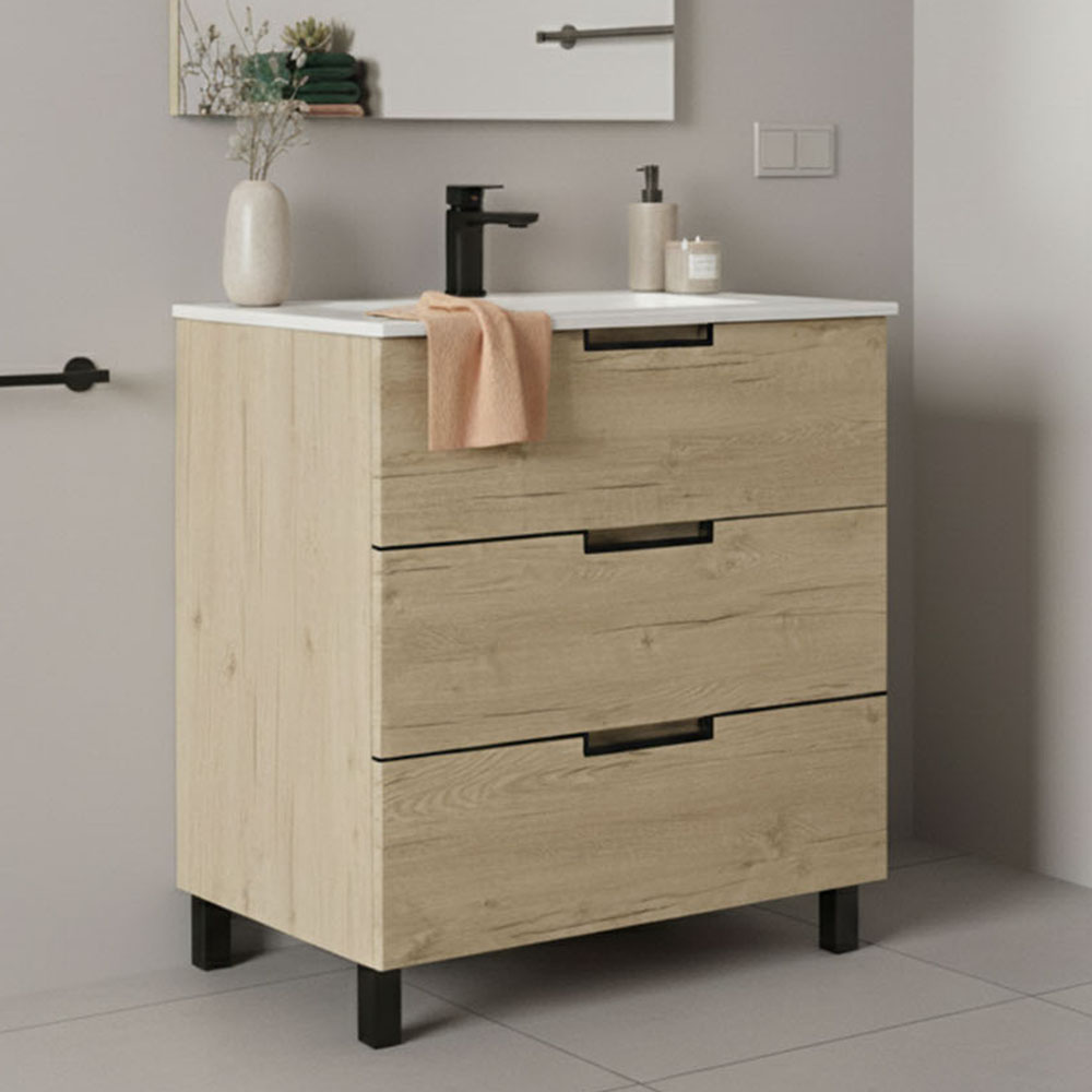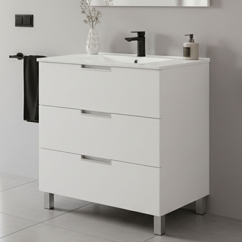 Kibath Mueble de Baño 80 cm con Lavabo VOLARE 3 cajones con patas