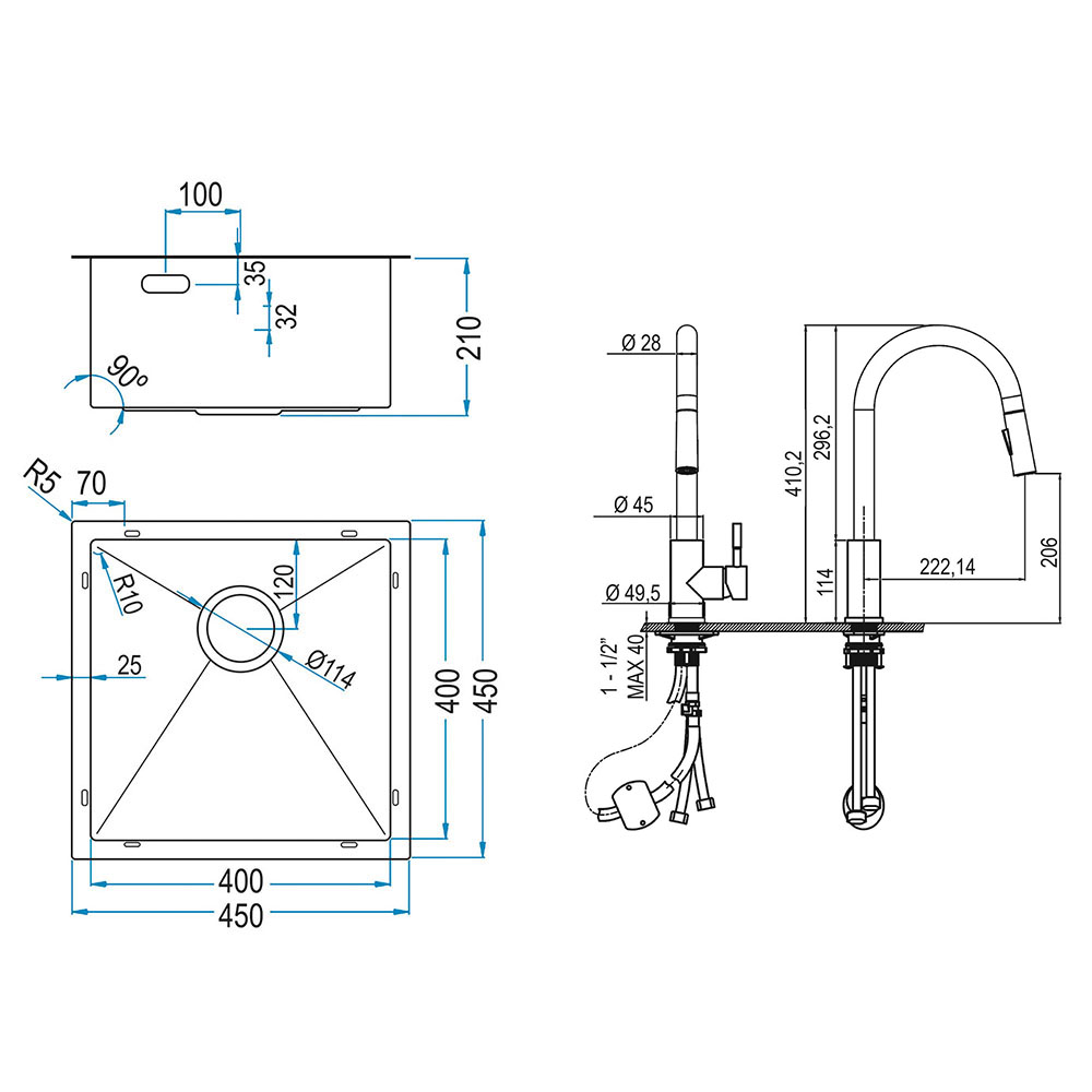 Kibath Pack fregadero + grifo monomando SOLUT acabado cepillado cepillado fabricado en acero inoxidable