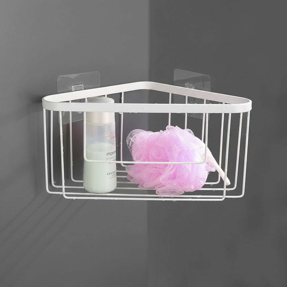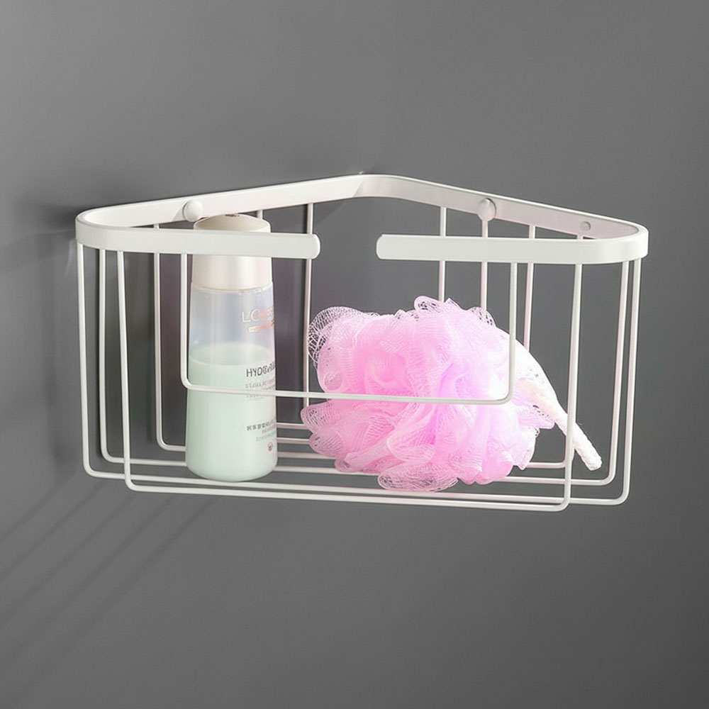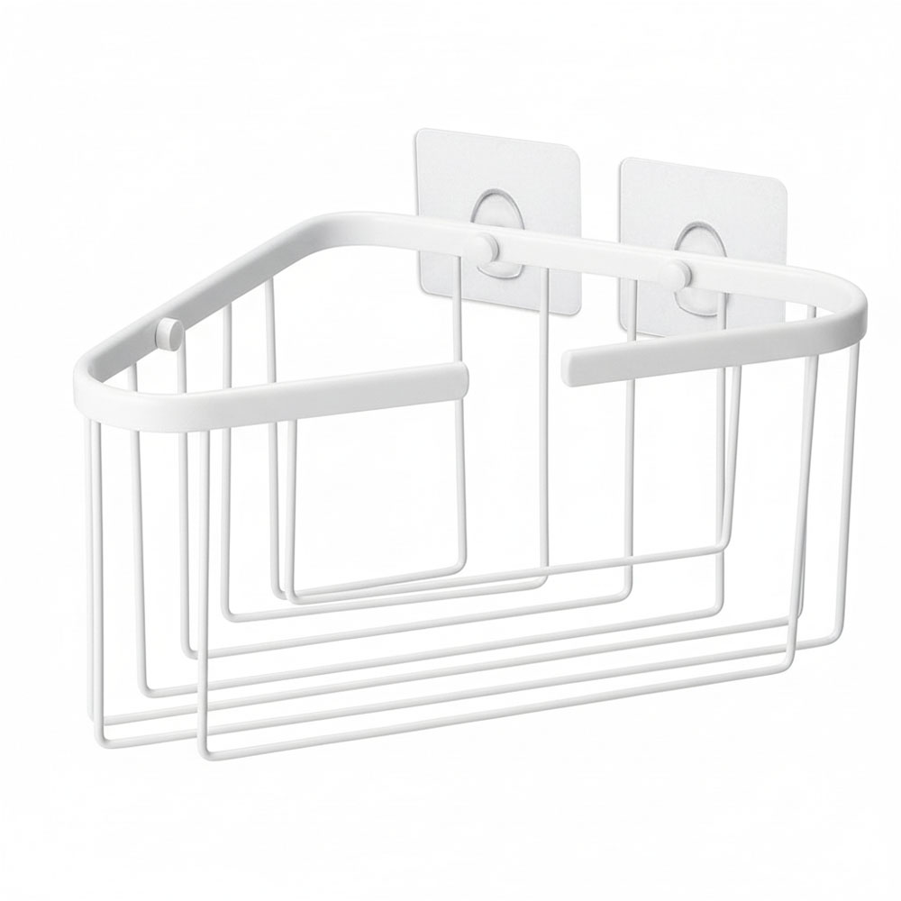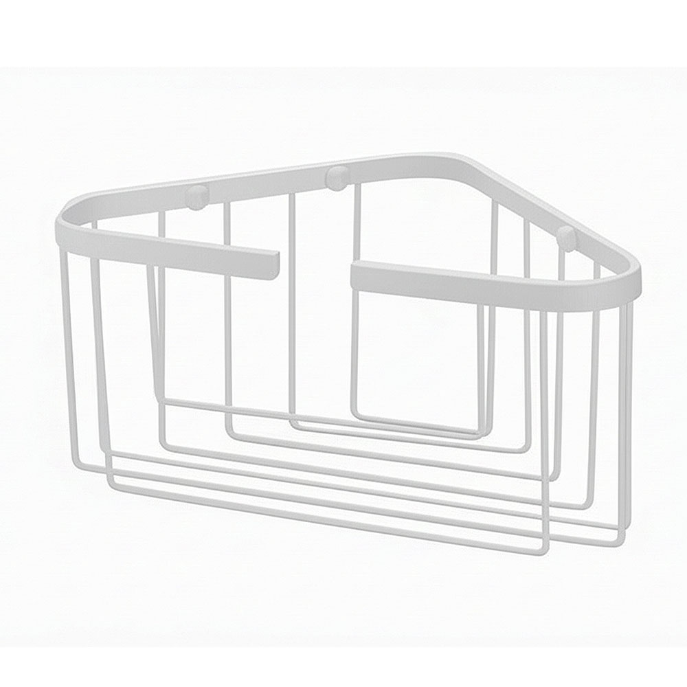 - – Materiales/ acabado cesta rinconera portagel de baño para ducha. fabricada en latón. Acabado en blanco mate