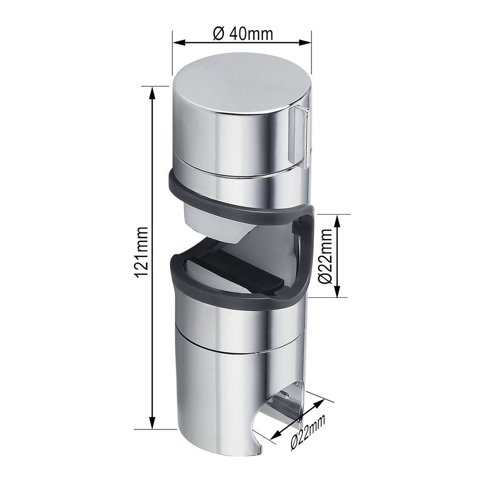 Soporte deslizante universal de ducha de mano. Para columnas redondas de 19 a 25 mm de di谩metro. Fabricado en ABS de alta densidad y acabados en cromo brillo