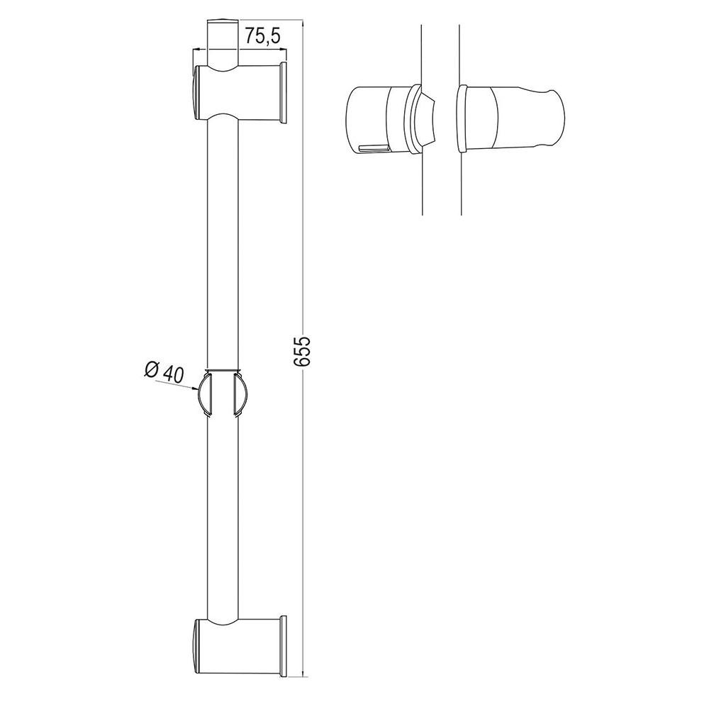 Kit barra de ducha BAR con soporte deslizante para maneral tubo de diámetro de 25 mm fabricado en acero inoxidable. Soportes de fijación y deslizante en ABS