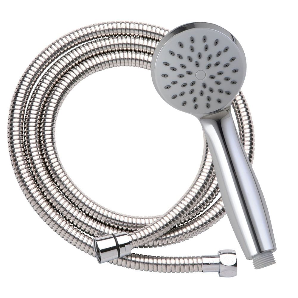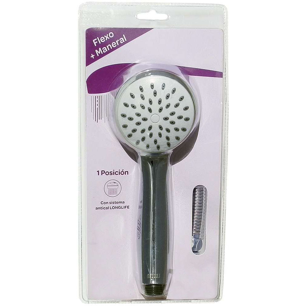 Maneral fabricado en ABS de alta resistencia, el flexo en acero inoxidable. La ducha de mano está acabada en cromo brillo, aporta un toque elegante a su baño. Dispone de un sistema antical que le facilitará el mantener, en perfecto estado, este producto. La salida de este maneral le dará una relajante ducha. Esta ducha de mano redonda tiene 1 modo lluvia natural.