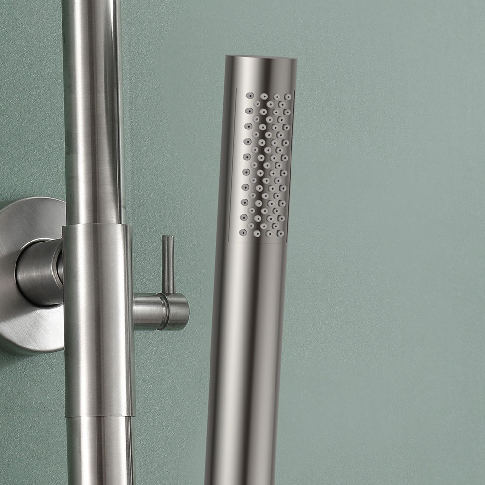 Mango de ducha de color niquel cepillado, ligero y duradero con sistema antical, Mango ducha de mano maneral redondo 1 posición fabricada en ABS de alta resistencia. La ducha de mano está acabada en niquel cepillado , aporta un toque elegante a su baño. Dispone de un sistema antical que le facilitará el mantener, en perfecto estado, este producto. La salida de este maneral le dará una relajante ducha. Esta ducha de mano redonda tiene 1 modo de chorro de agua efecto lluvia suave. Tanto para el uso normal diario como para esos momentos que necesitas relajarte con una ducha, por ejemplo, al final de la jornada laboral, nuestra ducha de mano es el producto aconsejado por ejemplo con su efecto de lluvia natural.