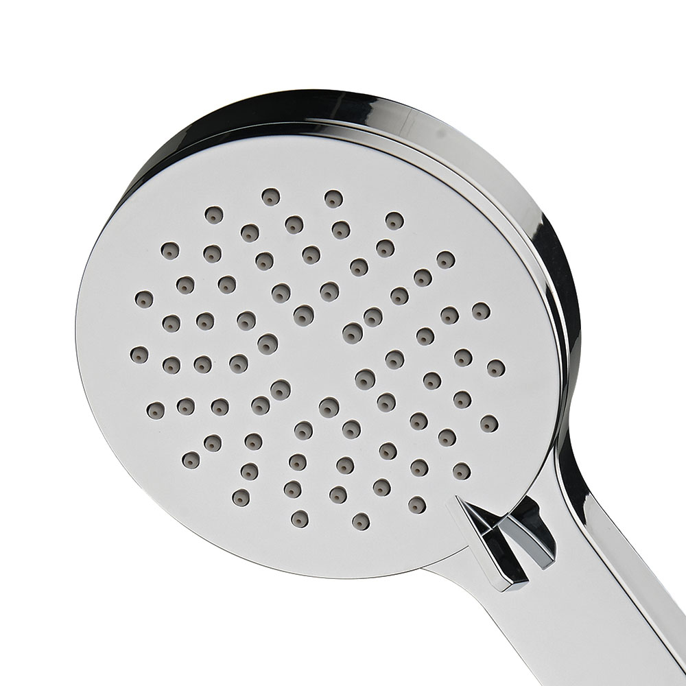 Fabricada en ABS de alta resistencia. La ducha de mano está acabada en cromo brillo, aporta un toque elegante a su baño. Dispone de un sistema antical que le facilitará el mantener, en perfecto estado, este producto. La salida de este maneral le dará una relajante ducha. Esta ducha de mano redonda tiene 3 modos de chorro de agua, efecto hidromasaje, salida chorro y modo salida de lluvia suave.