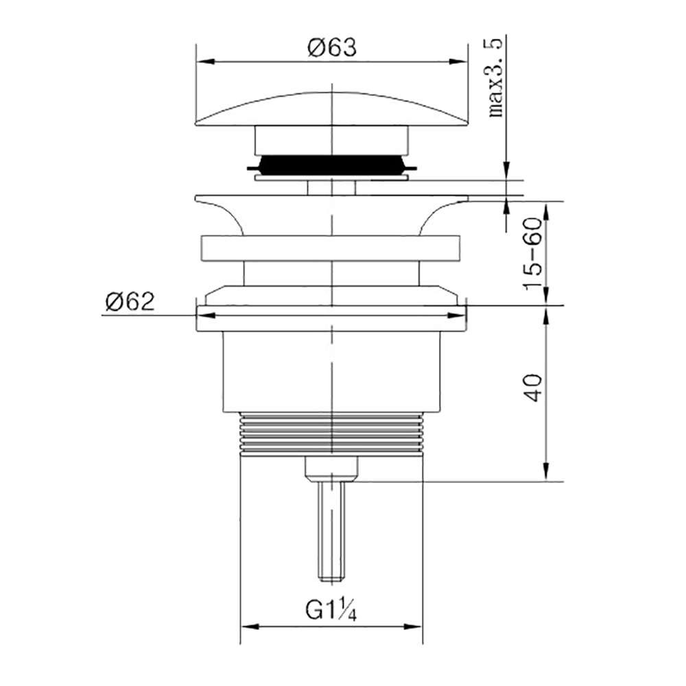 Válvula clic universal tapón grande. Fabricada 100% en latón. Mecanismo también de latón, caracterizado por su dureza, que le aporta una mayor resistencia al óxido.